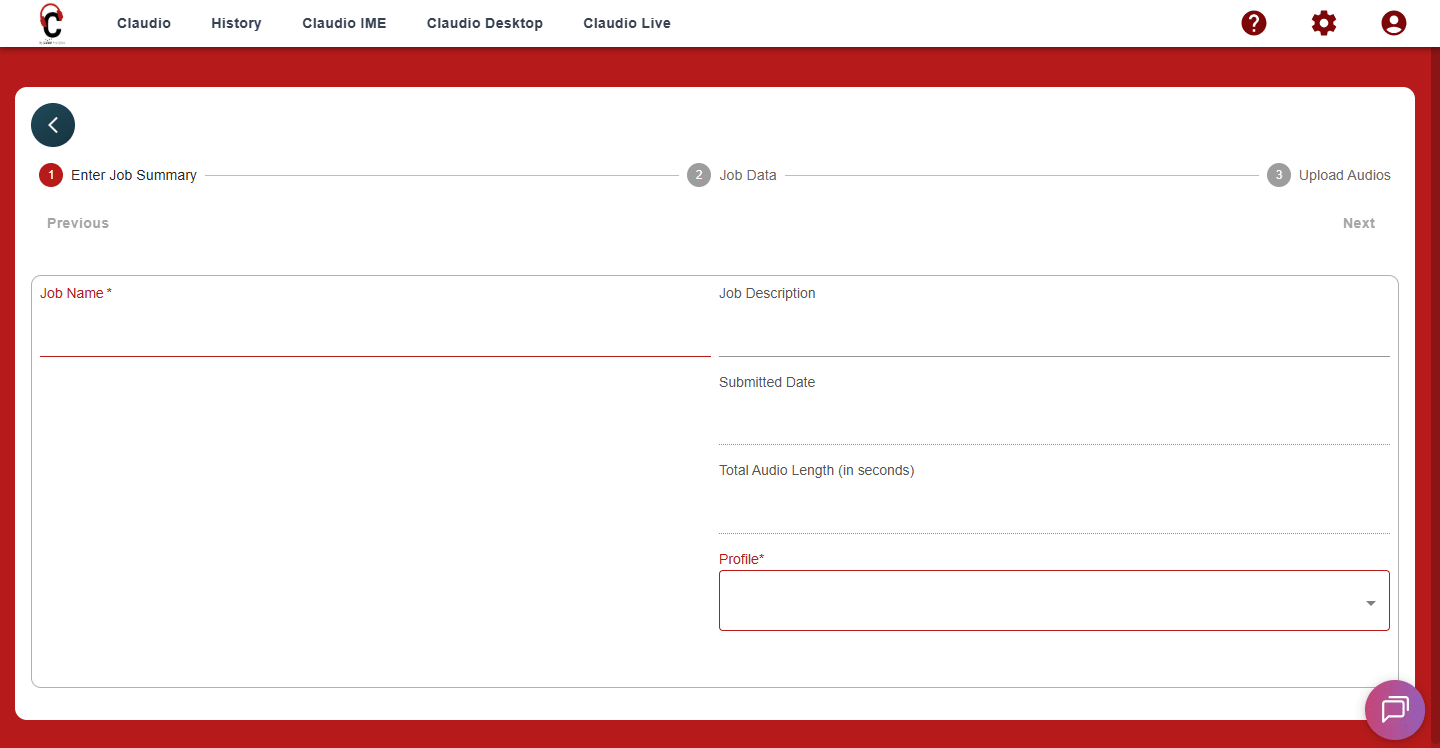 NOTE: To submit a file for transcription through Claudio, you can also consider the "Quick Start" option to submit single or multiple media files. To learn how to use the Quick Start function in the Claudio web app, click here.